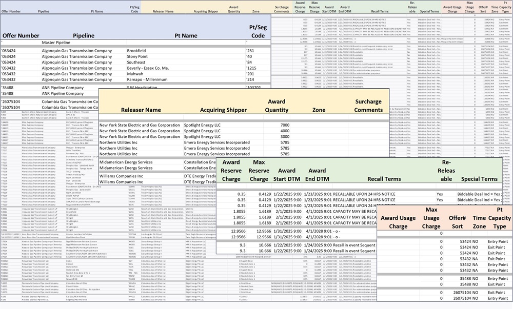 Each morning we email you a report with all the trades from the day before. The report includes Winning Bidder, Winning Bid Rate, Volume, Receipt/Delivery Point, Release Type, Start/End Data, etc.